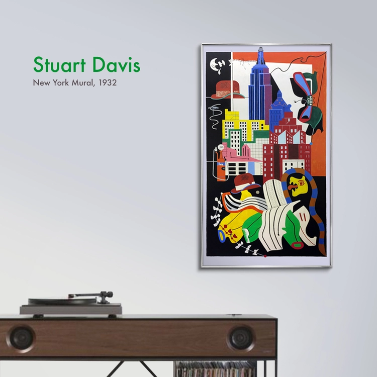 Stuart Davis(스튜어트 데이비스)는 20세기 가장 중요한 미국 작가 중 한 명으로 꼽히는 작가입니다. 네온사인 간판, 광고 등이 포함된 도시 풍경을 담았고 광고 이미지를 사용하는 등 팝아트의 창시자로 평가되기도 합니다. 본인의 작품이 사회 정치적 환경에 영향을 미칠 수 있다는 믿음으로 작품에 정치적 메세지를 담아 다양한 기법으로 작업해왔습니다. 초기 작품들은 구상적인 표현에 가까웠으나 이후 입체파 큐비즘의 실험에 합류하며 폴 세잔과 앙리 마티스 등의 영향을 받아 합성 큐비즘이라는 자신의 스타일을 개발했습니다. 재즈 클럽에 매일 갔을 정도로 음악에 관심이 많았던 그는 추상적인 시각 예술과 재즈의 생동감과 즉흥성이 닮았다고 생각했습니다. 그 영향으로 자유로운 형태감과 화려한 색감은 그의 트레이드 마크가 되었습니다.