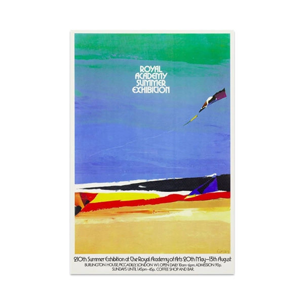 Published again in celebration of The Royal Academy's 250th Birthday. Donald Hamilton Fraser RA (1929-2009) was part of a tradition whereby newly elected Academicians would desing the Summer Exhibtion poster. In this year, Fraser became very interested in the Kite motif developed in this poster to the extent that Kite's were sold in the gift shop throughout the exhibition.
