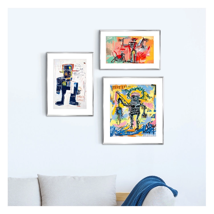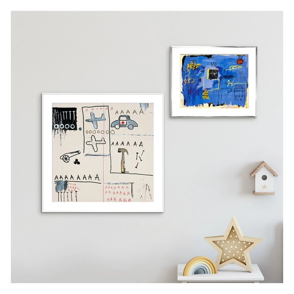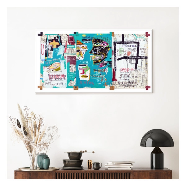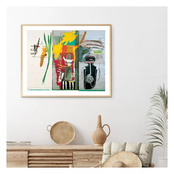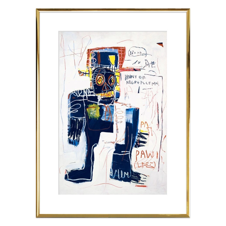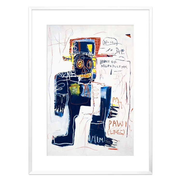 그의 작품에는 흑인들이 자주 등장합니다. 이 작품에서는 흑인들이 자신들을 노예로 만든 국가의 규칙을 다루는 경찰이 되는 것이 아이러니 하다는 이야기를 담고 있습니다. 고급 수채화로 영국에서 제작된 고품질 프린트입니다. © Jean-Michel Basquiat / ® Artestar, New York